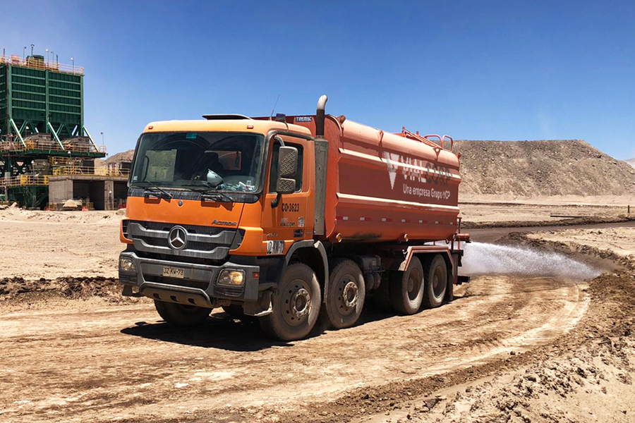 Servicio de aplicación de productos supresores de polvo en estado líquido en dosis optimizadas sobre carpetas granulares de rodado. Con este tratamiento se reduce hasta en un 90% el consumo de agua.